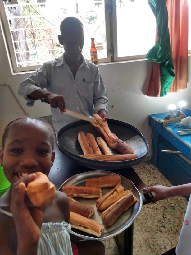 Every day, Rise Bakery supplies Maison's children with freshly baked bread and peanut butter. The children and staff love eating the fresh bread.